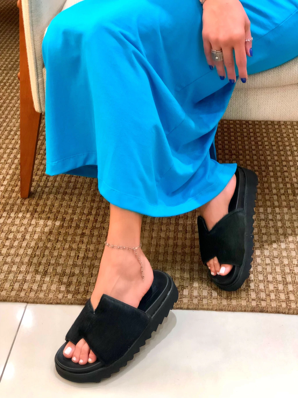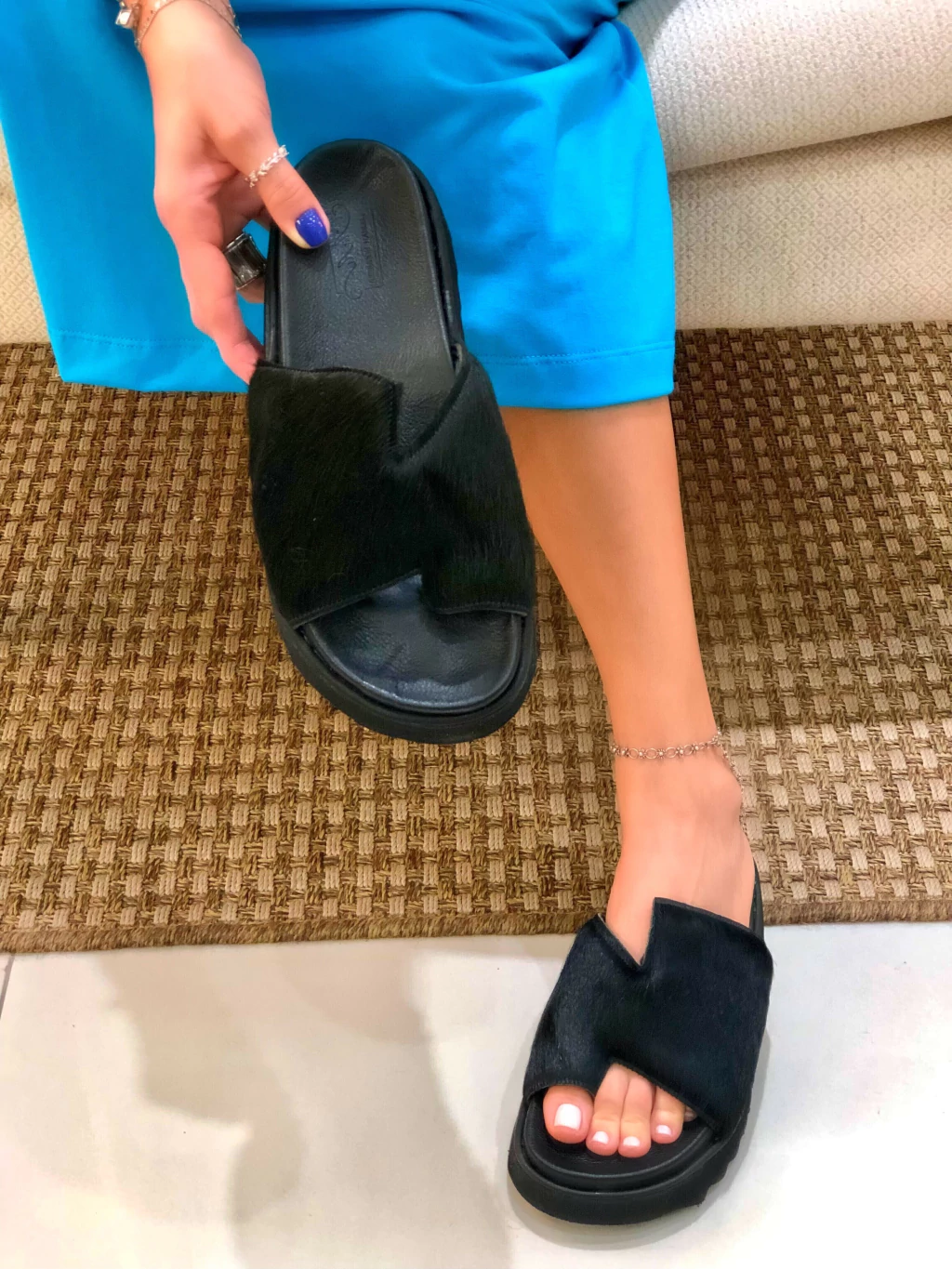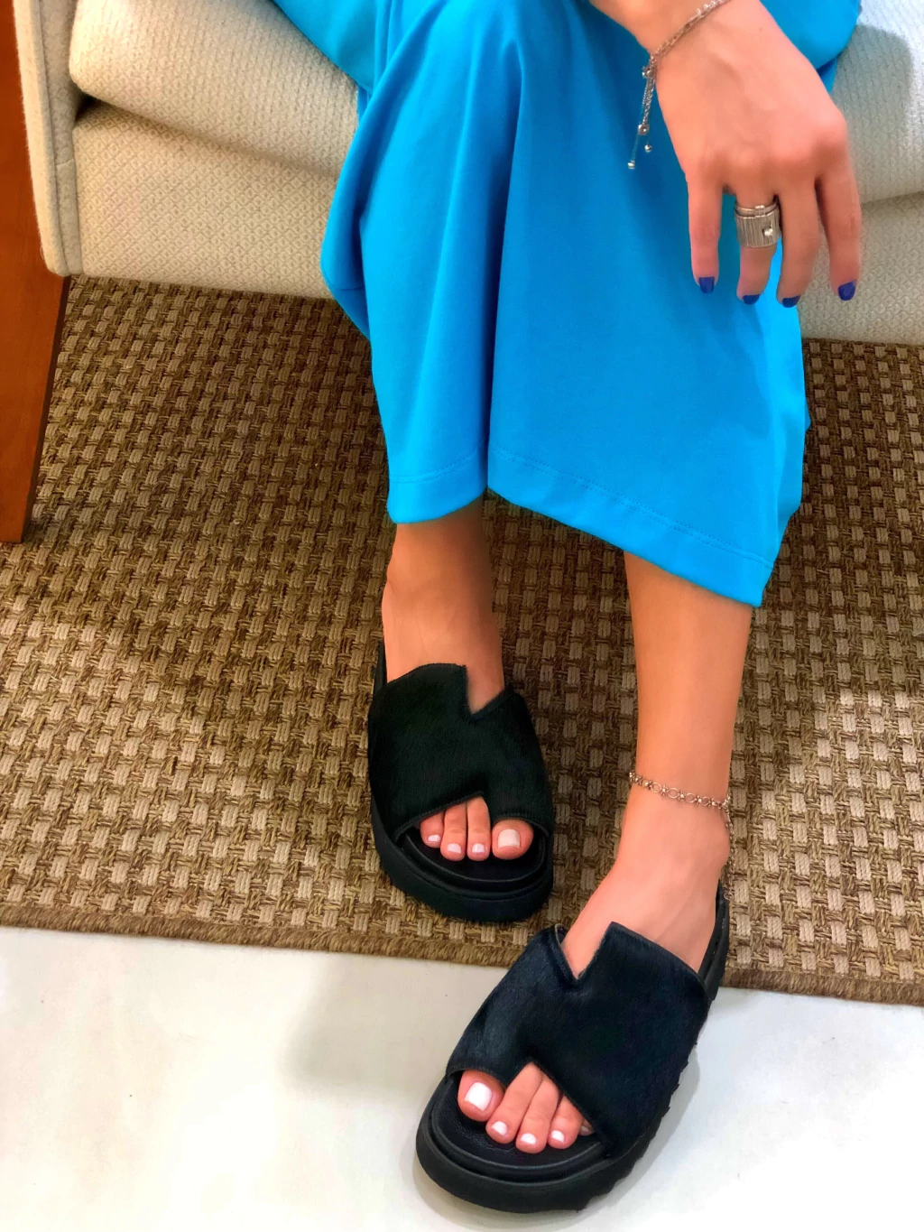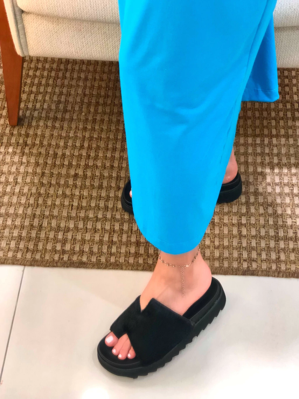 A Flat Preta com Pelo é a escolha ideal para quem busca conforto e estilo em um único calçado. Seu design sofisticado e moderno se adapta a diversas ocasiões, do dia a dia ao happy hour.