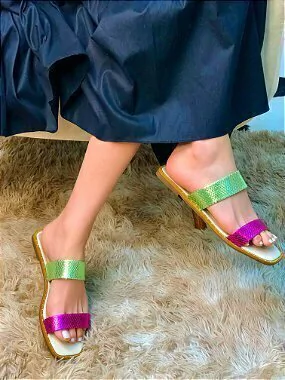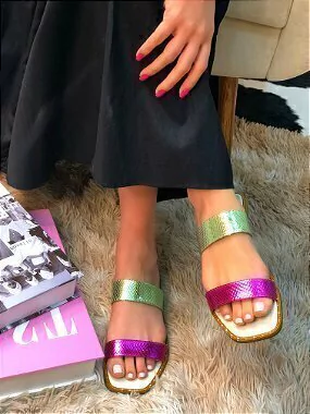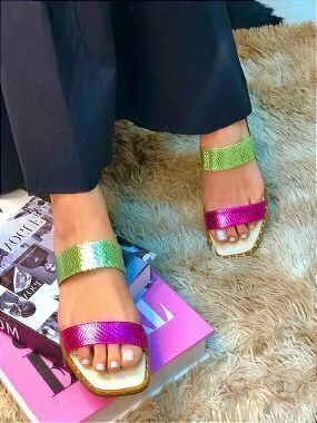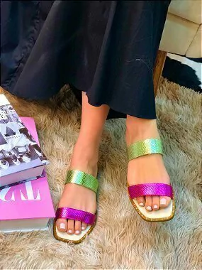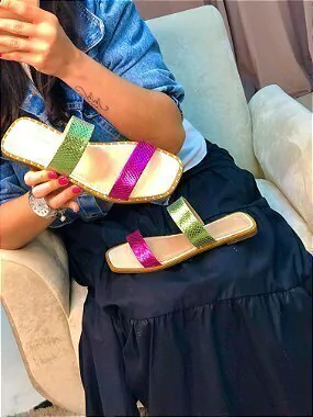 Conheça a Rasteirinha em Couro com Tiras Color e Pedraria