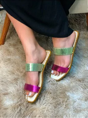 Não fique de fora! Adicione a Rasteirinha em Couro com Tiras Color e Pedraria ao seu closet e arrase em todas as ocasiões!