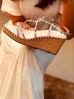 Esta sandália é a peça que faltava no seu guarda-roupa! O couro macio se adapta aos pés, enquanto a plataforma revestida com corda proporciona suporte ideal para o seu dia a dia.