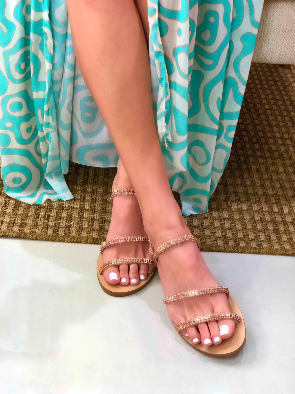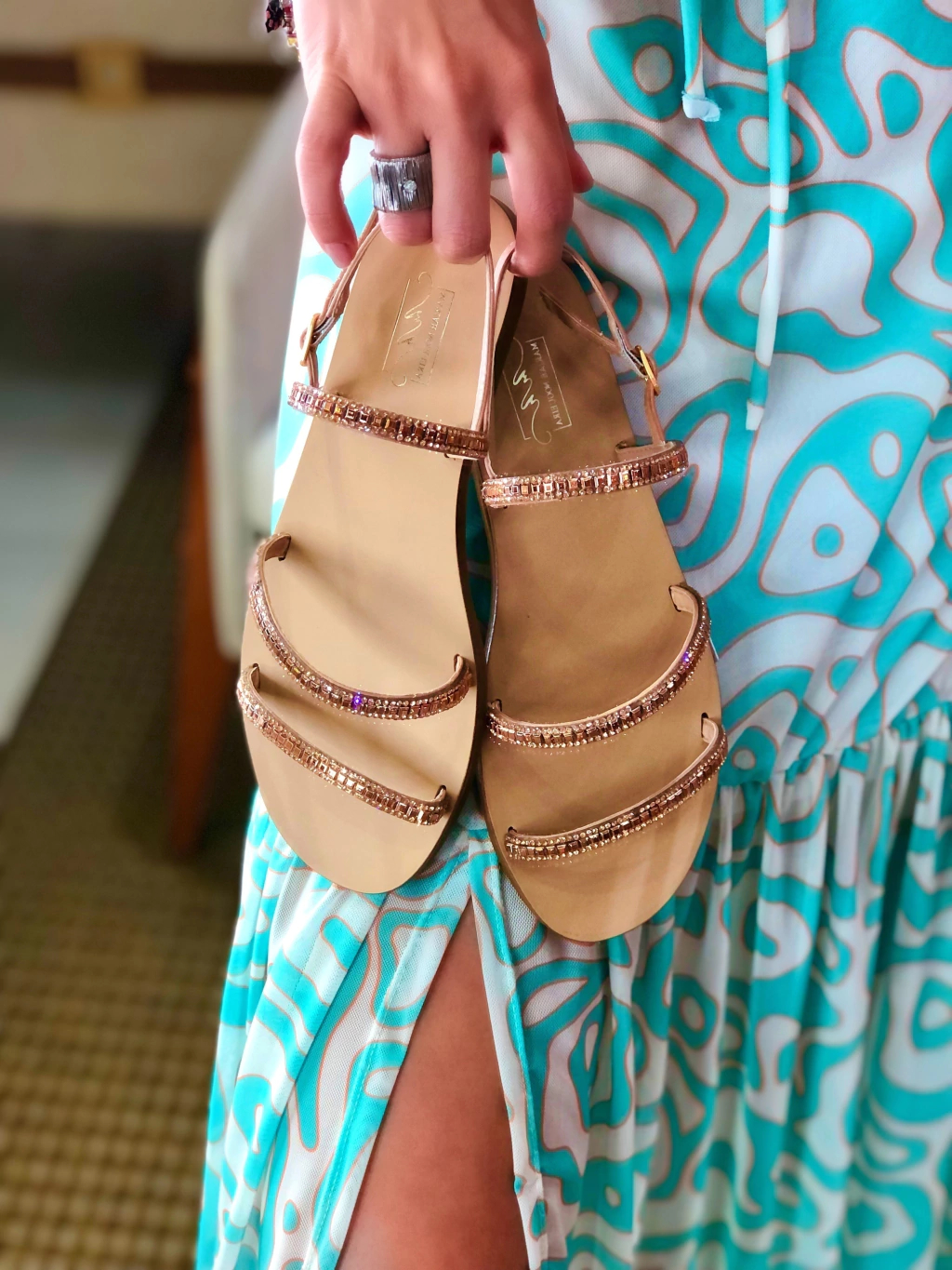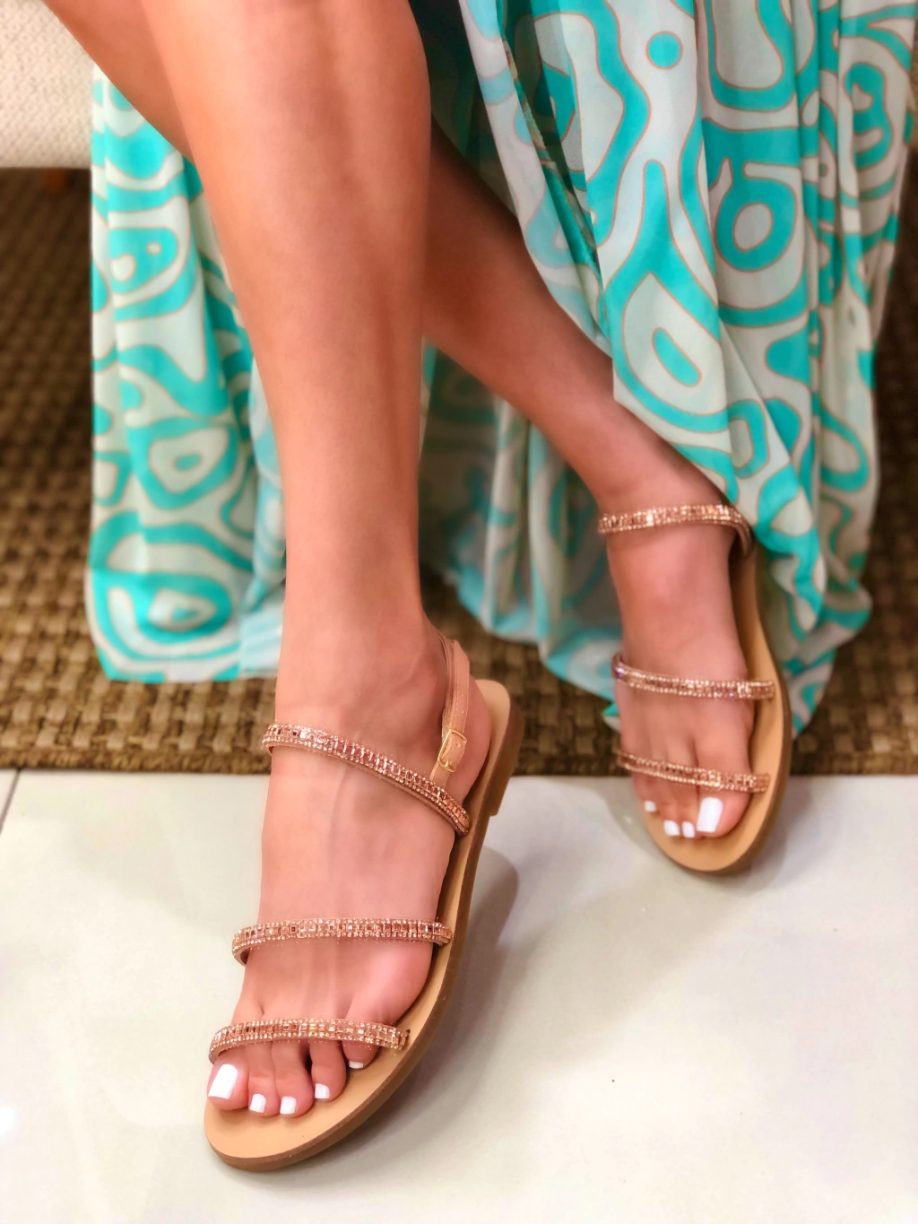 Conheça a Sandália Couro com Pedrarias nas Tiras!