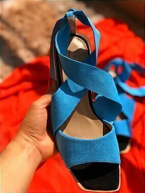 Conheça a Sandália Salto Preto/Royal Couro de Cabra!