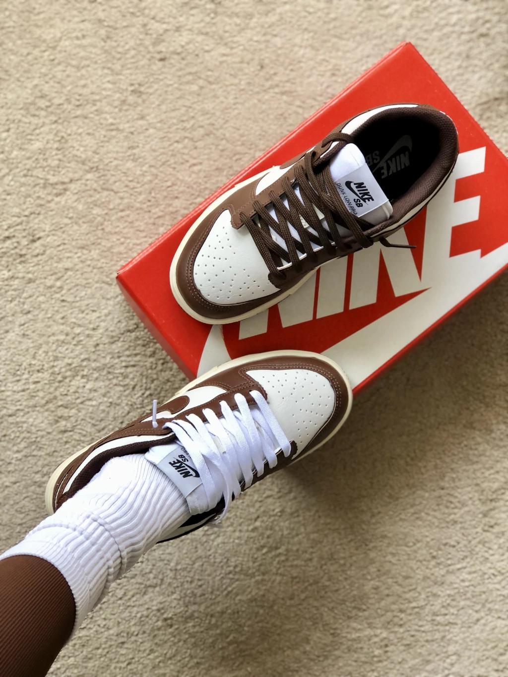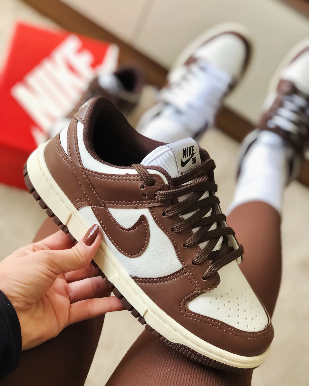Apresentamos o Tênis Nike Dunk Low Feminino na sofisticada combinação de Branco e Marron. Este modelo é a escolha ideal para mulheres que prezam pela elegância e conforto em sua rotina.