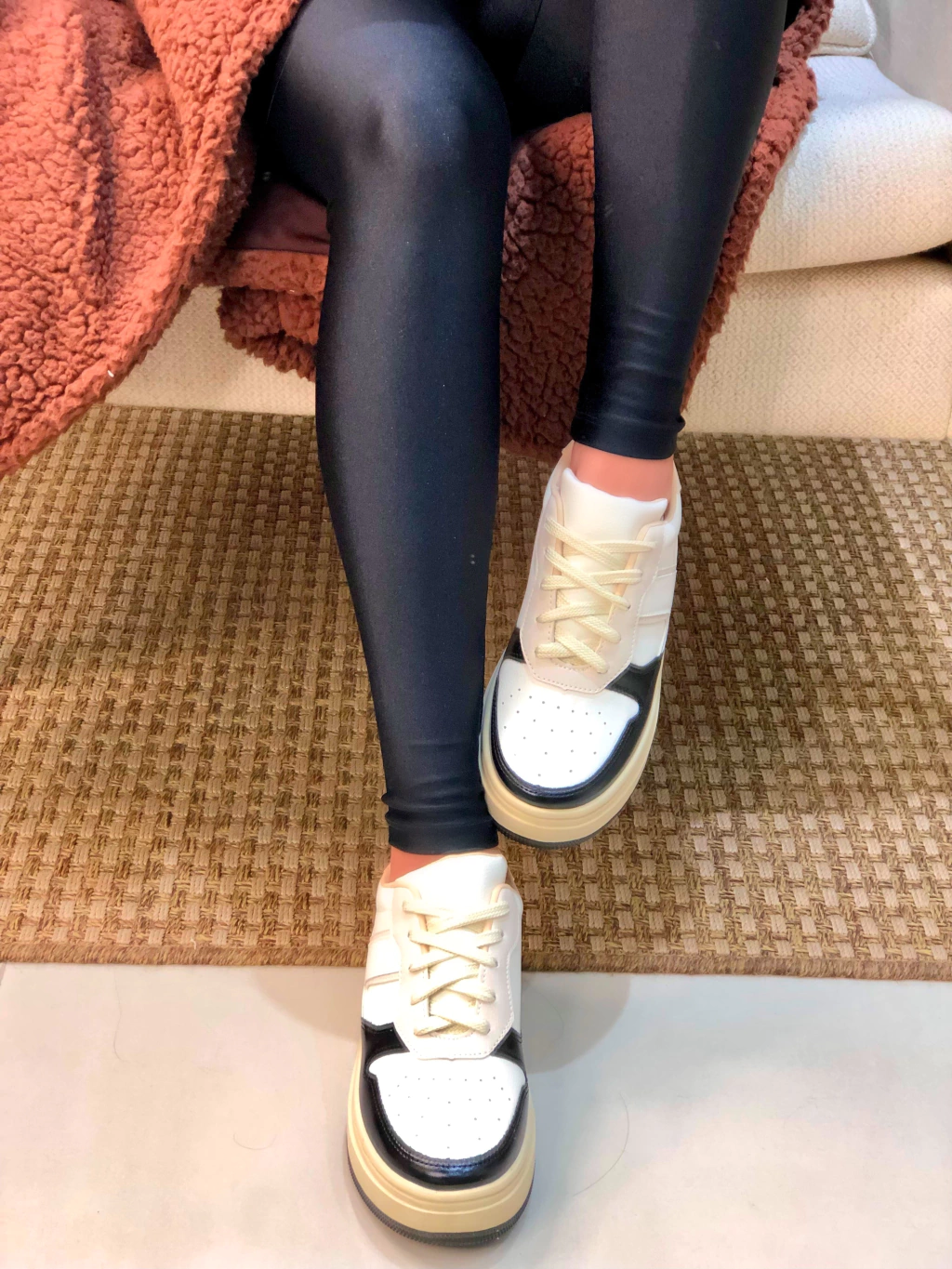 Conheça o Tênis Off White com Detalhe Preto, a escolha perfeita para quem busca unir conforto e estilo na correria do dia a dia! Com um design moderno e bico arredondado, esse tênis se destaca pelo seu solado alto, que garante um visual despojado e cheio de atitude. Produzido com materiais de alta qualidade, ele oferece durabilidade e conforto em cada passo. Ideal para compor looks casuais ou até mais arrumadinhos, esse tênis é super versátil e não pode faltar no seu guarda-roupa! Não perca a chance de ter o Tênis Off White e arrase em qualquer ocasião! Cor: Off White com Detalhe Preto. Material: Alta qualidade.